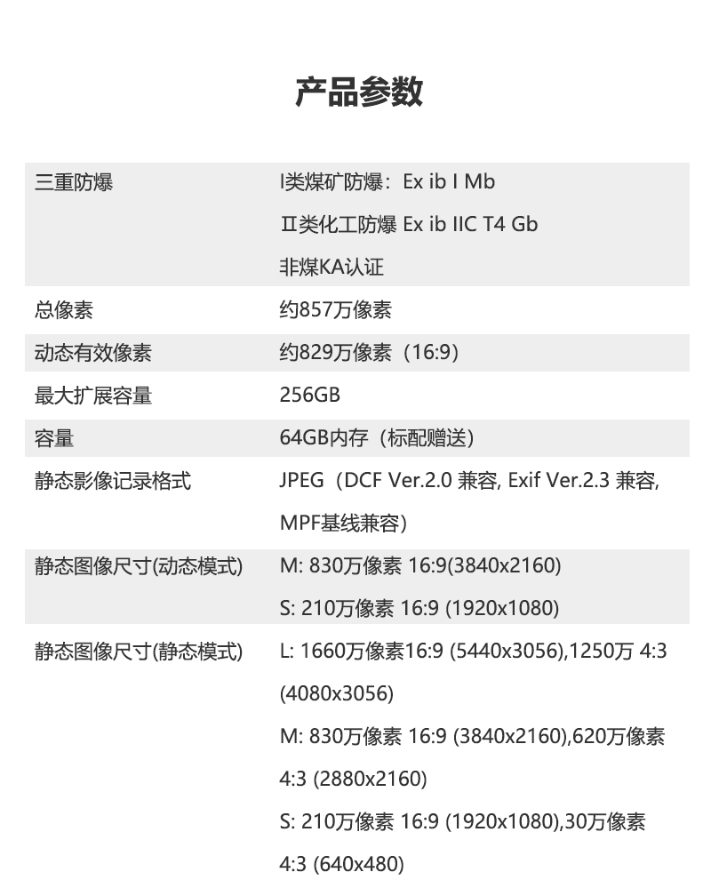 ①三重防爆:I类煤矿防爆:Ex ib I Mb 、Ⅱ类化工防爆 Ex ib IIC T4 Gb、非煤KA认证。